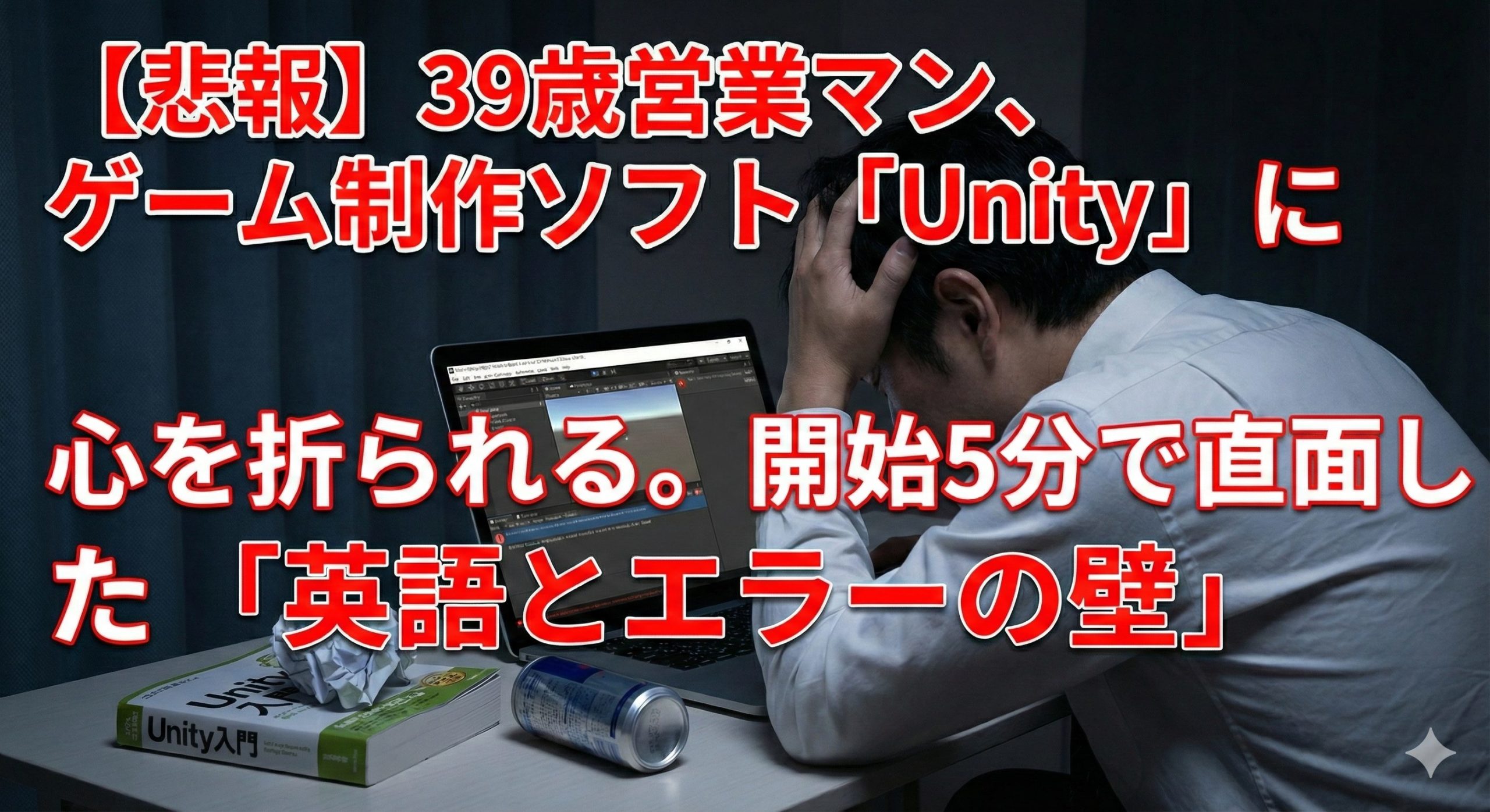 意気揚々とゲーム制作ソフト「Unity(ユニティ)」をインストールしたあの日の高揚感は、今や見る影もありません。